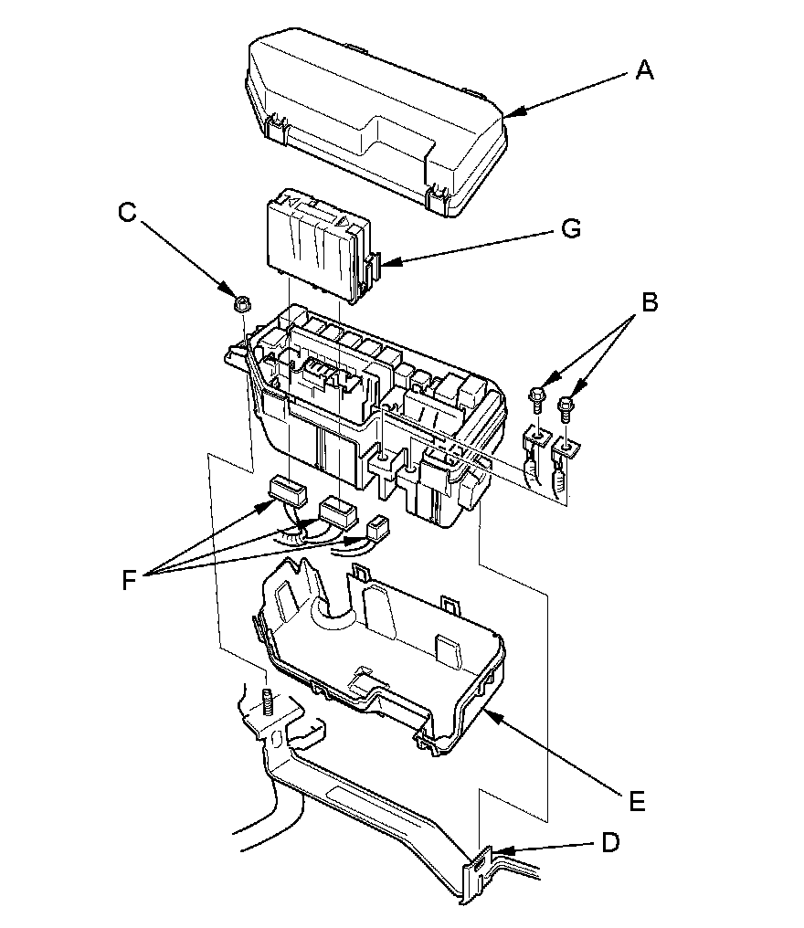 4. Disconnect the connectors (F) from the under-hood fuse/relay box.