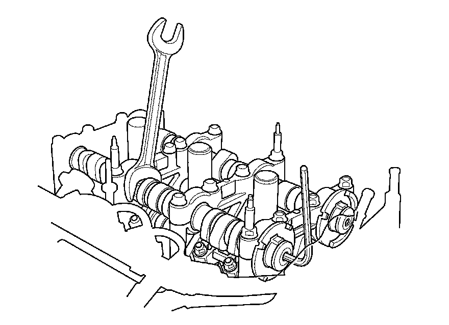 3. Hold the camshaft with an open-end wrench, then loosen the bolt.