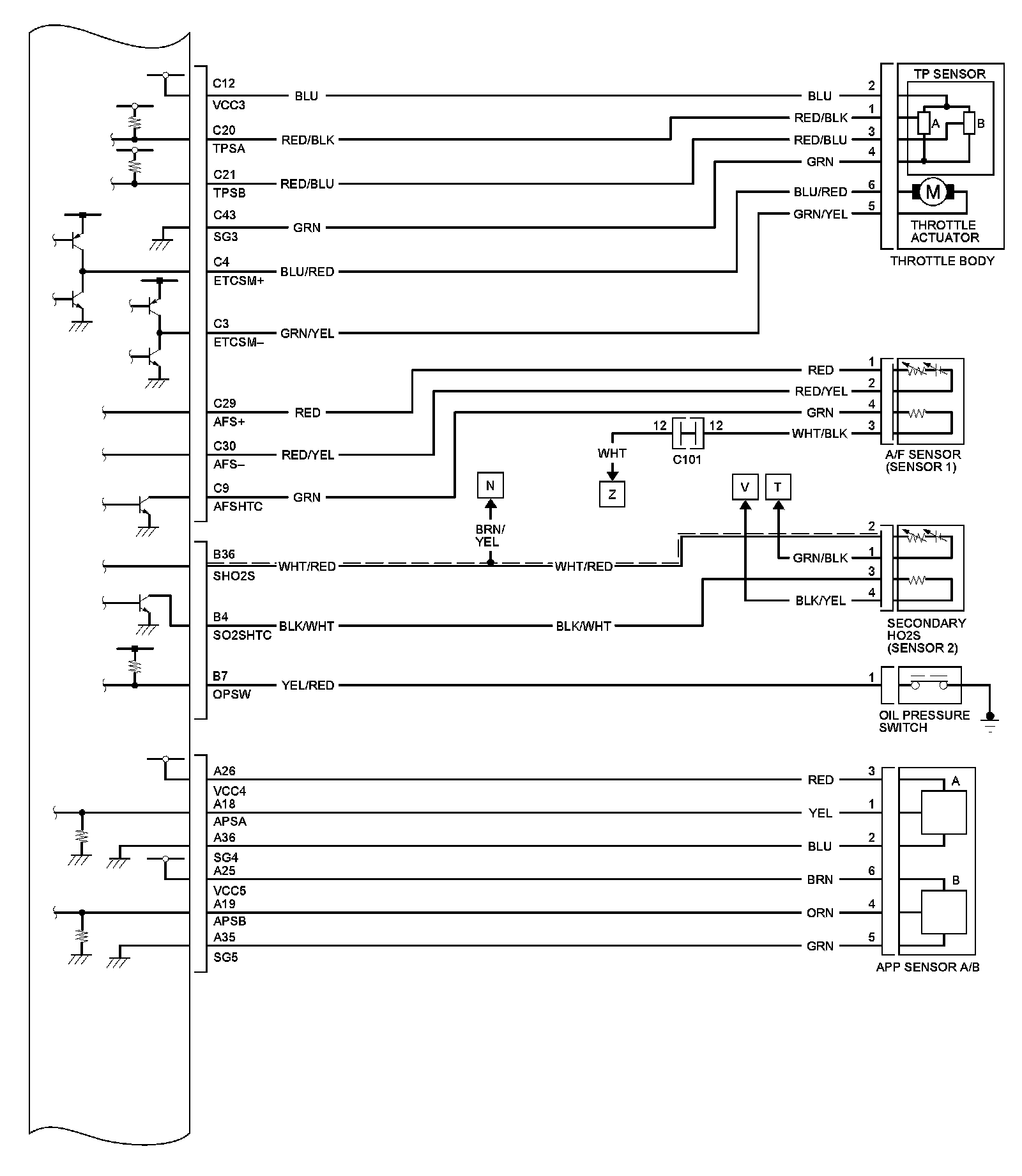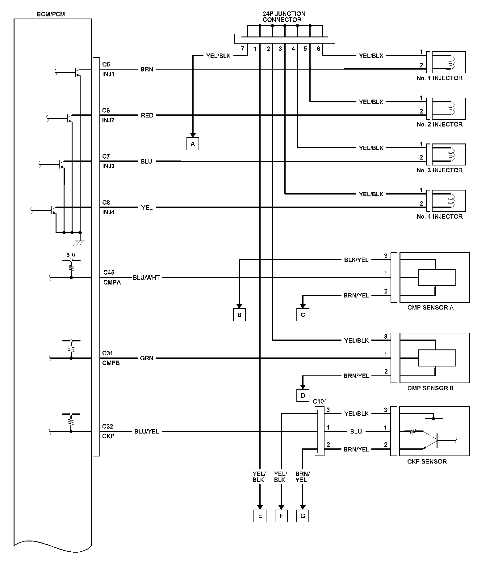ECM/PCM Inputs and Outputs at ECM/PCM Connector C (circle) (49P)