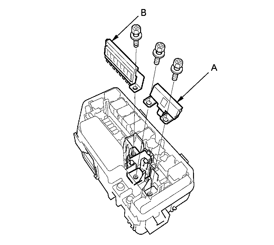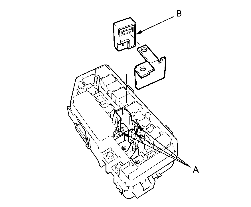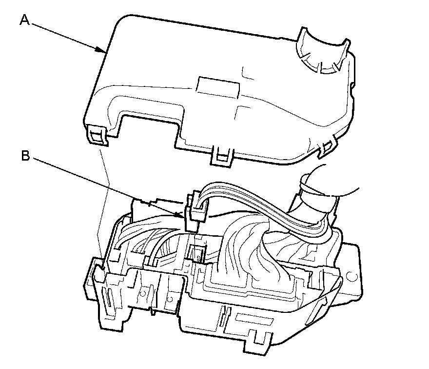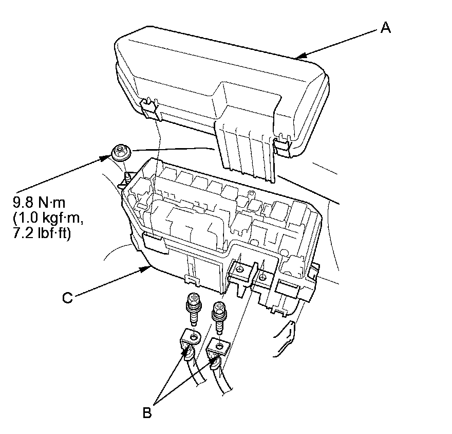 3. Remove the under-hood fuse/relay box (C) from the bracket.