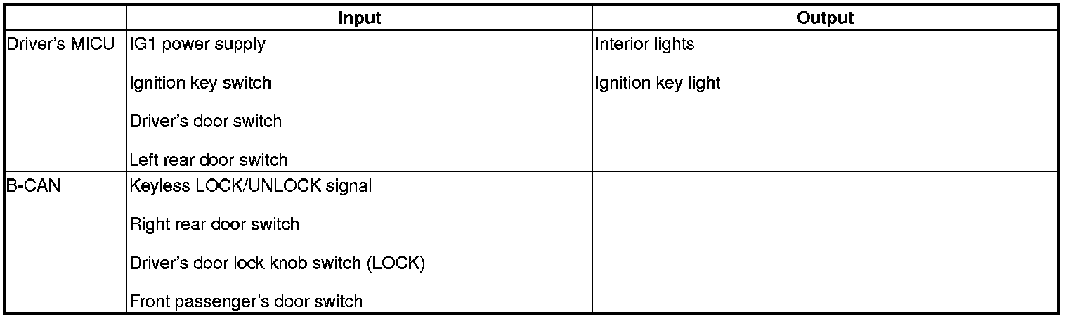 The driver's MICU control of the ceiling light ON/OFF is based on input signals from each switch.