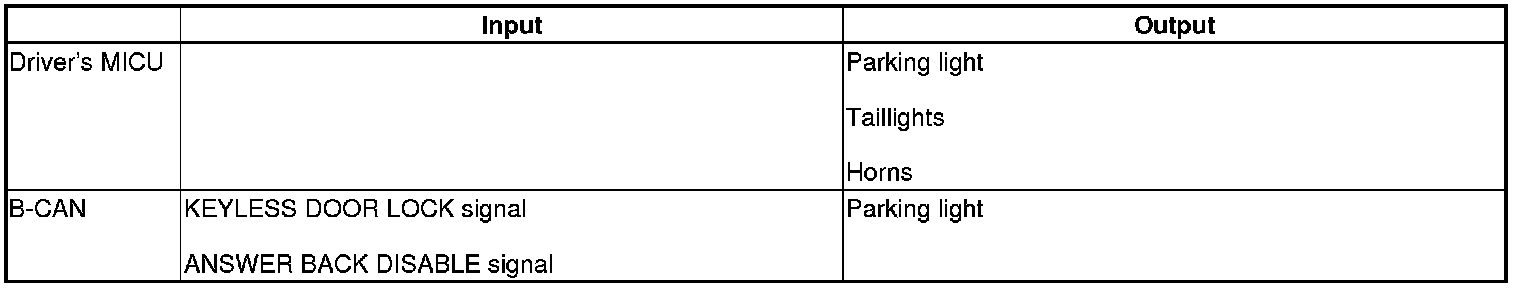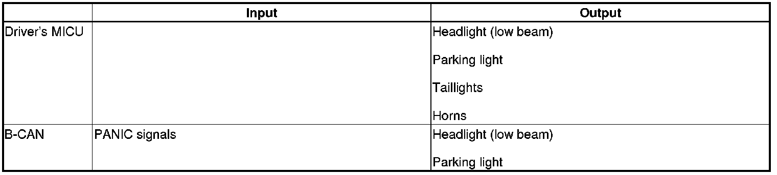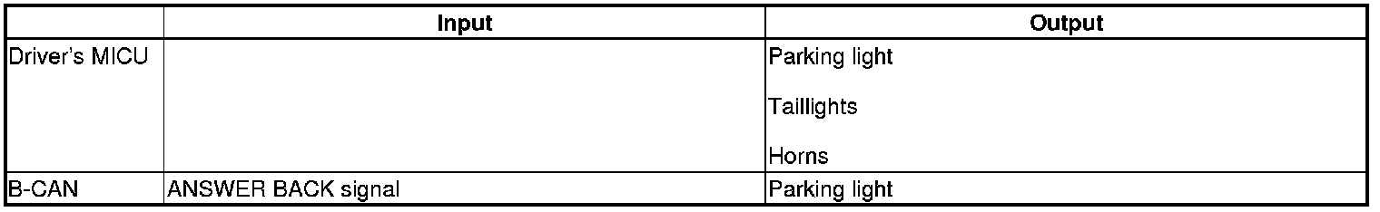 The driver's MICU control of the lighting system and horns is based on inputs from each switch and B-CAN data.