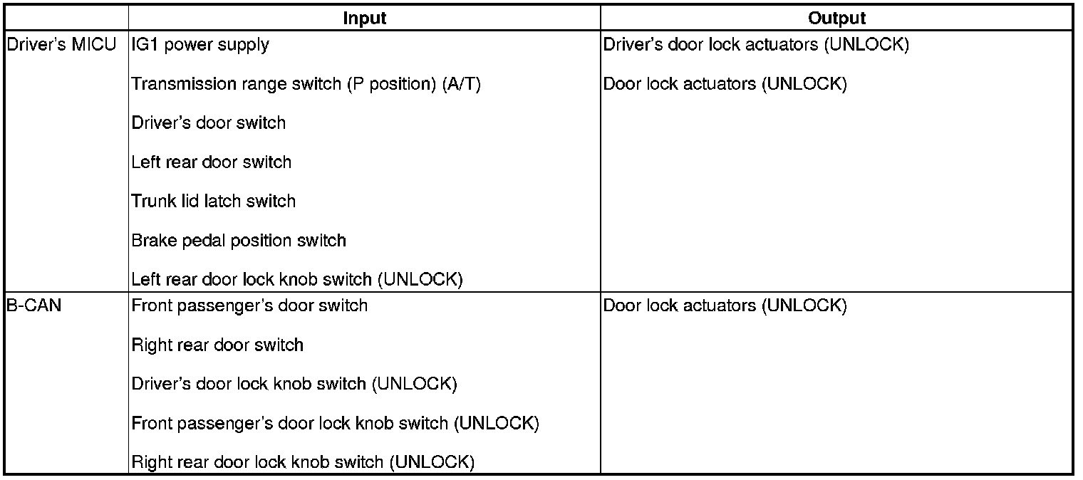 Auto Power Door Locks (UNLOCK operation)*