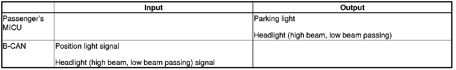 The passenger's MICU control of the front passenger's side headlight, and parking lights is based on inputs from the driver's MICU.