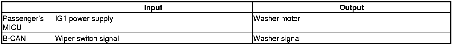 The passenger's MICU control of the washer motor is based on inputs from the wiper switch.