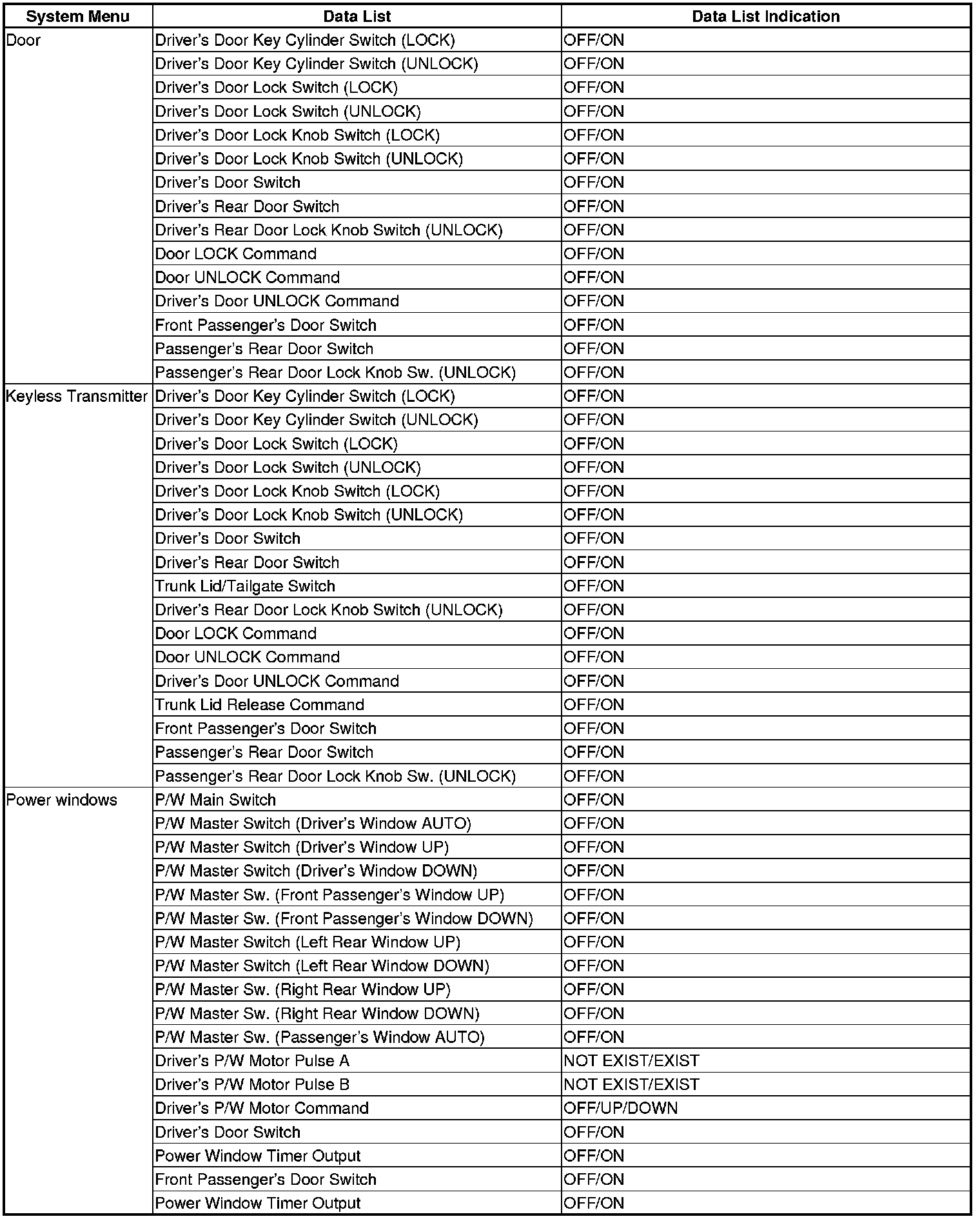 Power Door Locks (UNLOCK)*