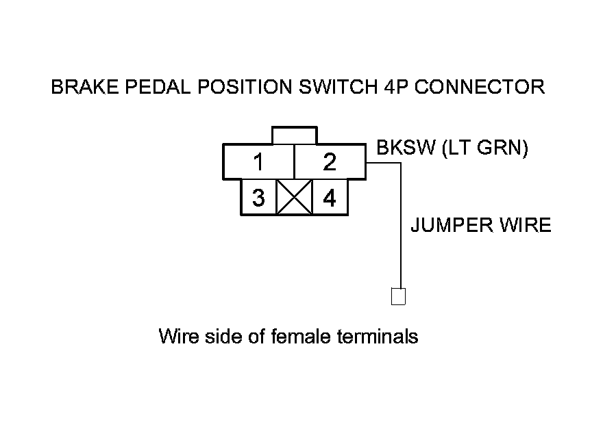 9. Connect brake pedal position switch 4P connector terminal No. 2 to body ground with a jumper wire.