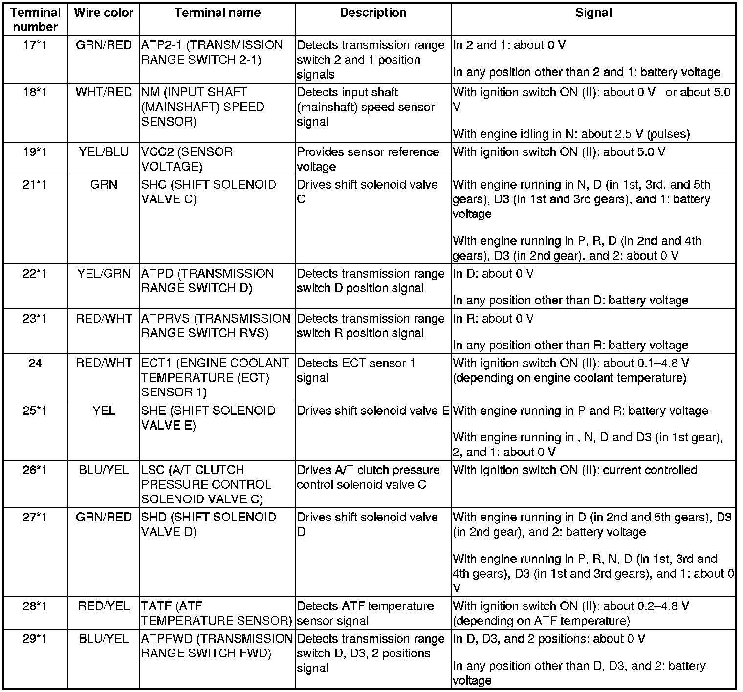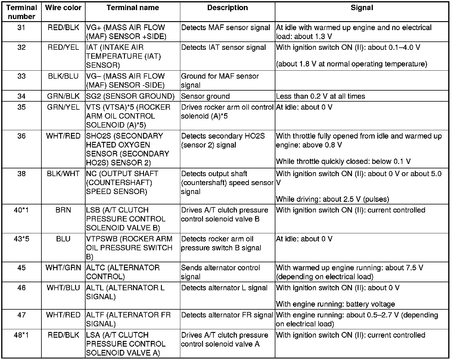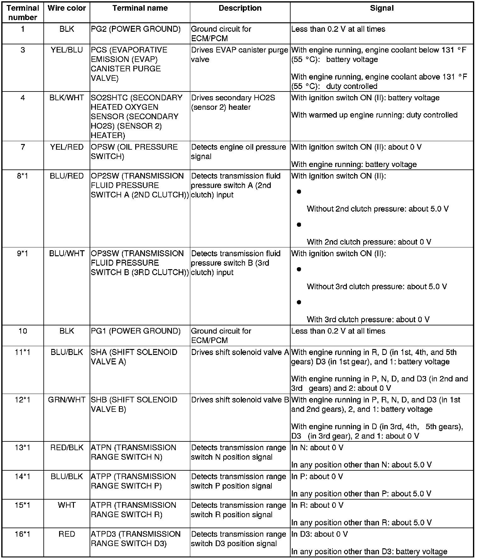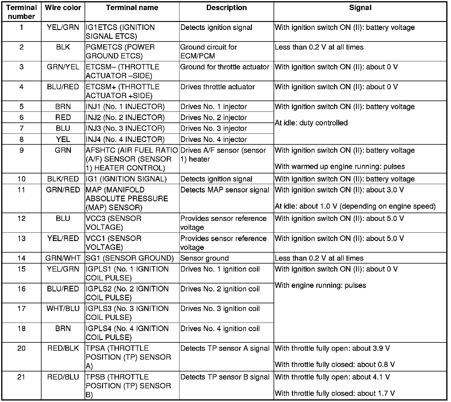 ECM/PCM Inputs and Outputs at ECM/PCM Connector A (square) (49P)