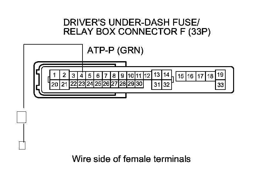 14. Disconnect driver's under-dash fuse/relay box connector F (33P).