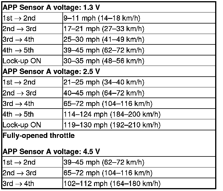 13. Review each snapshot individually, and compare the Shift Control, the APP Sensor A voltage, and the Vehicle Speed to the following table: