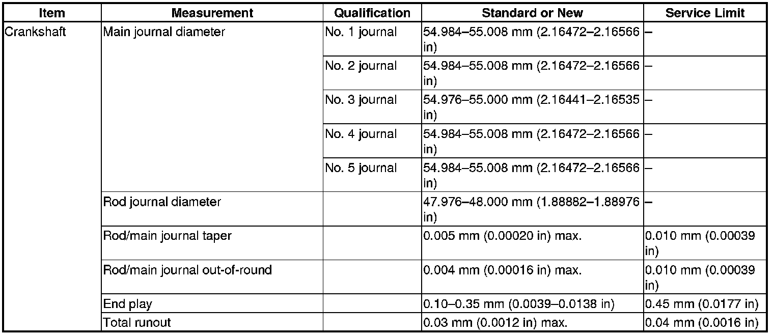 Crankshaft Specification(s)