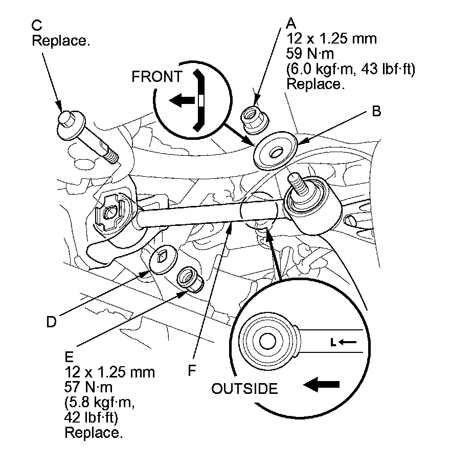 - First install all of the components, and lightly tighten the bolts and the nuts, then raise the suspension to load it with the vehicle's weight before fully tightening to the specified torque.