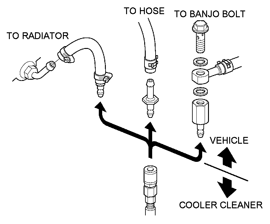 4. Select the appropriate pair of fittings, and attach them to the radiator, to the hoses, or to the banjo bolts for flow through the ATF cooler cleaner.