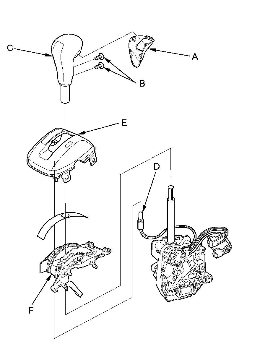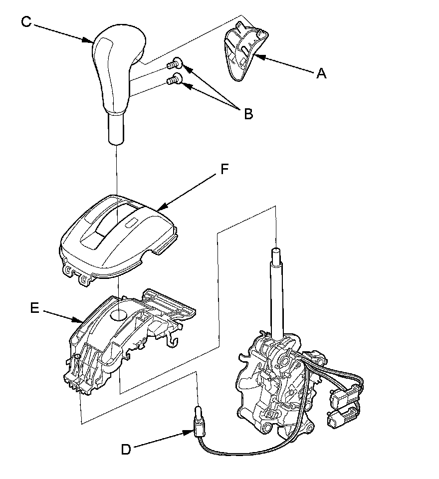 2. Remove the shift lever assembly A/T Shift Lever Removal.
