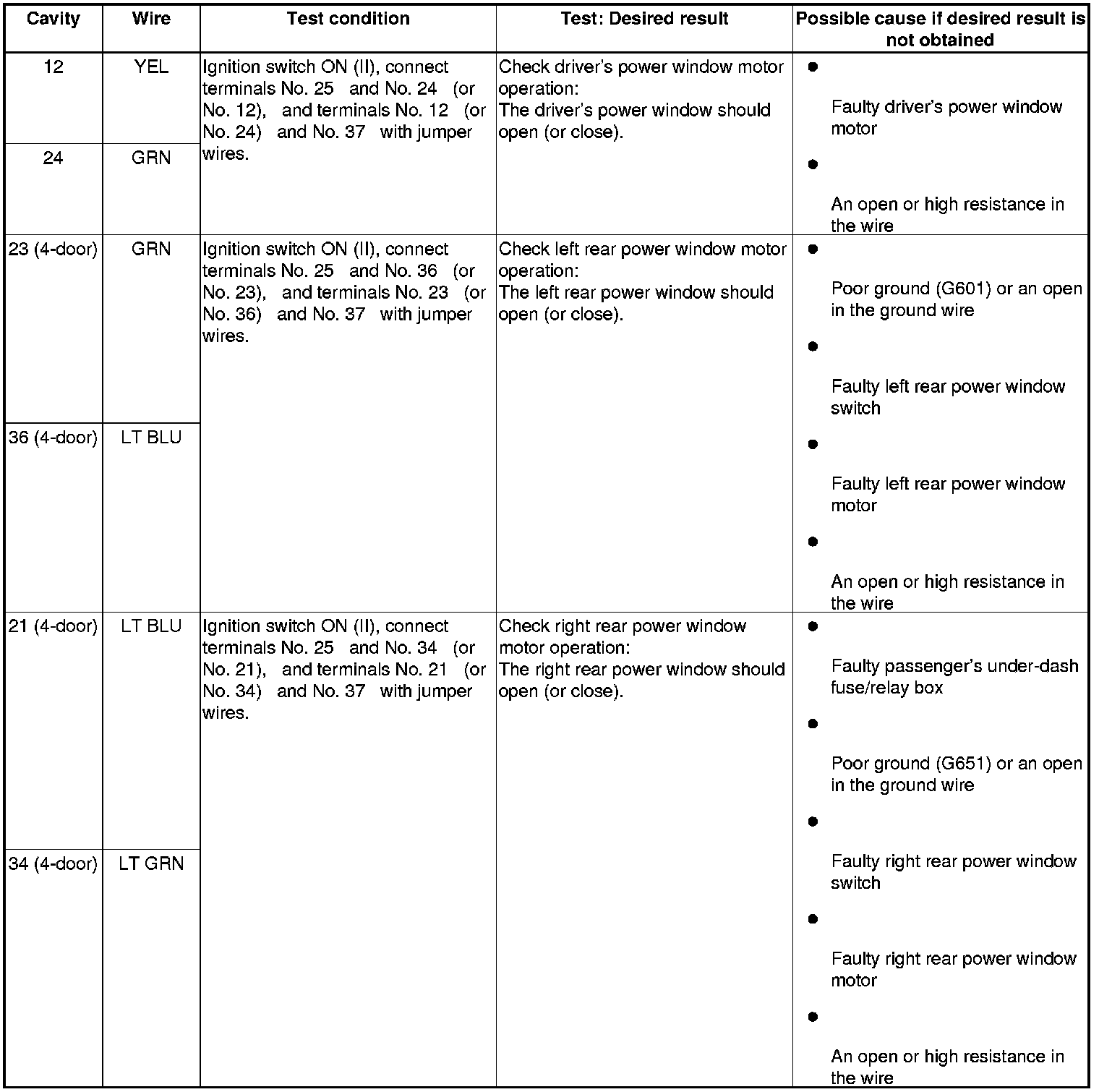- If all the input tests prove OK, the door multiplex control unit must be faulty, replace the power window master switch.
