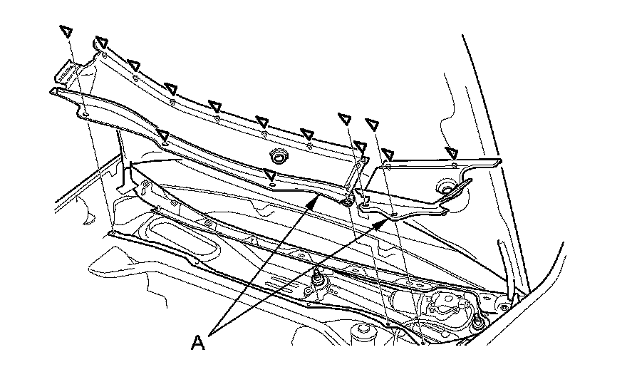 4. Remove the hood seal and cowl covers (A).