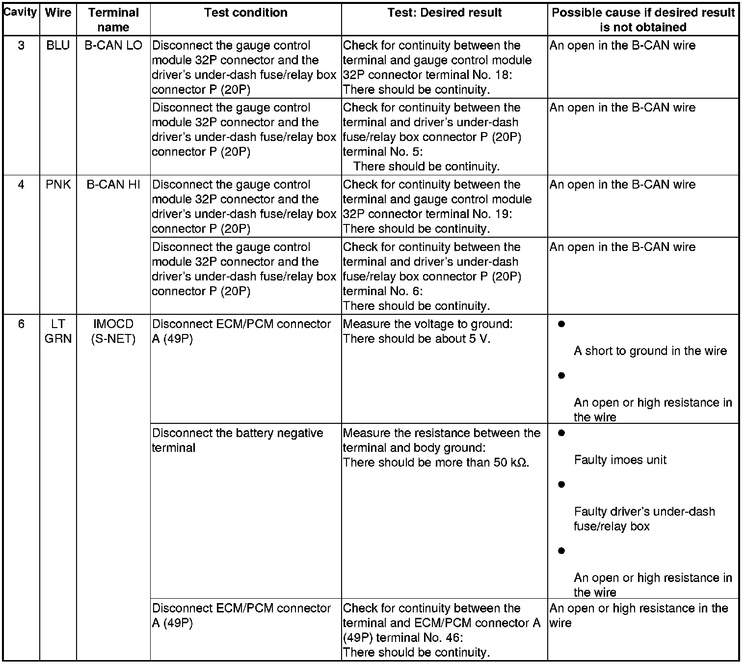 - Before testing, troubleshoot the multiplex integrated control unit first, using B-CAN System Diagnosis Test Mode A Troubleshooting - B-CAN System Diagnosis Test Mode A.