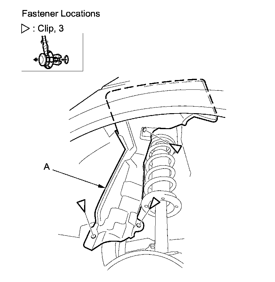 2. Detach the clips, then remove the fuel pipe protector (A).