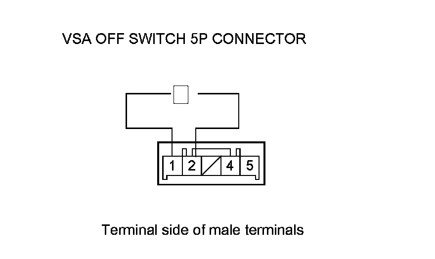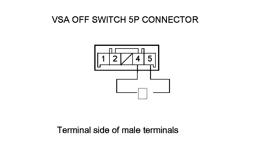 5. Check for continuity between VSA OFF switch 5P connector terminals No. 4 and No. 5. There should be continuity at all times.