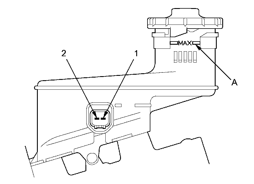 - Fill the reservoir with brake fluid to the MAX (upper) level (A). With the float up, there should be no continuity.