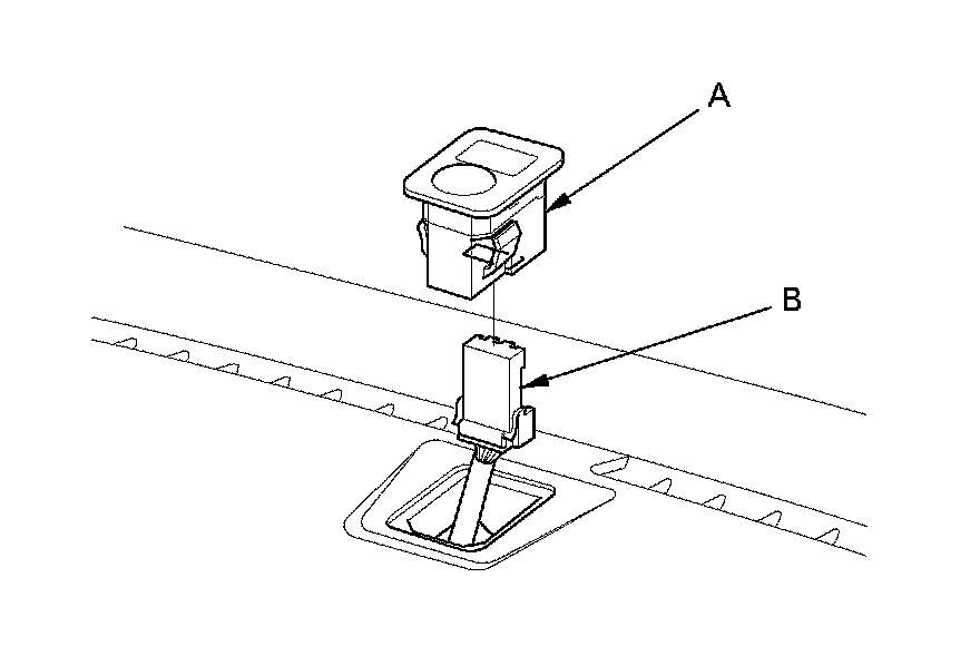 1. Remove the sunlight sensor (A) from the dashboard, then disconnect the connector (B). Be careful not to damage the sensor and the dashboard.