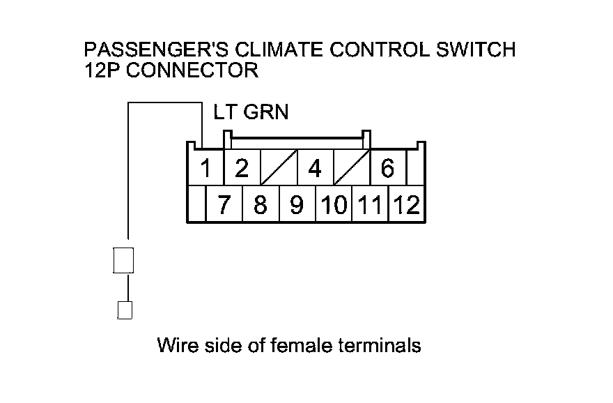 10. Check for continuity between body ground and passenger's climate control switch 12P connector terminals No. 7, No. 8, No. 9, No. 10, No. 11, and No. 12 individually.