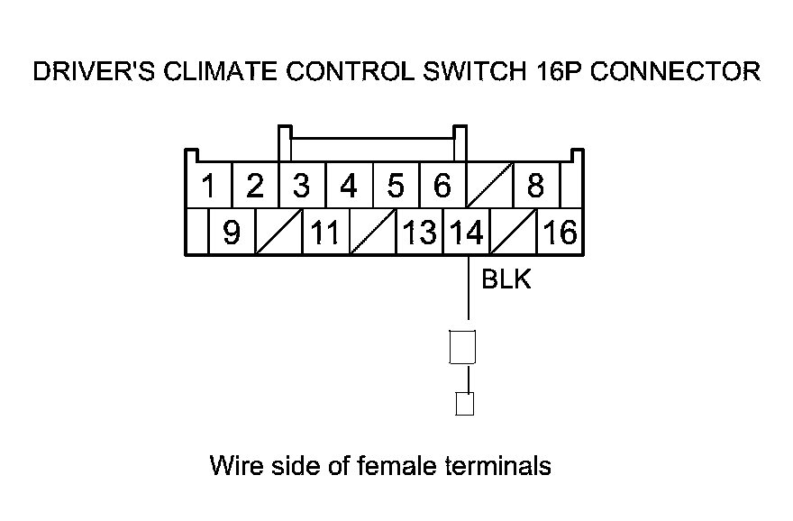 16. Check for continuity between body ground and driver's climate control switch 16P connector terminal No. 14.