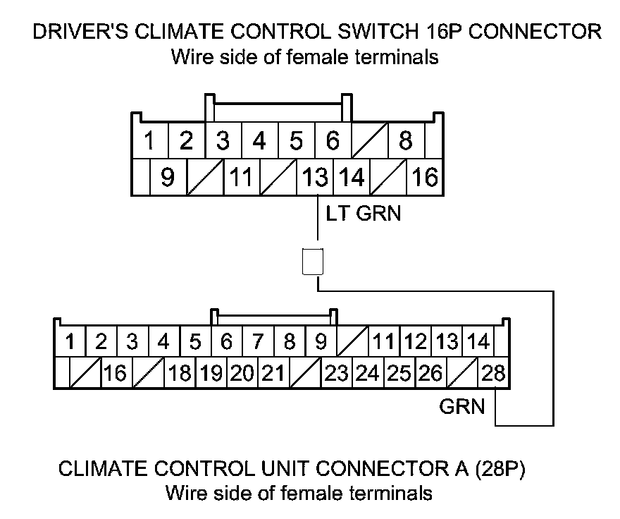 Repair an open in the wires between the driver's climate control switch and the passenger's climate control switch.�