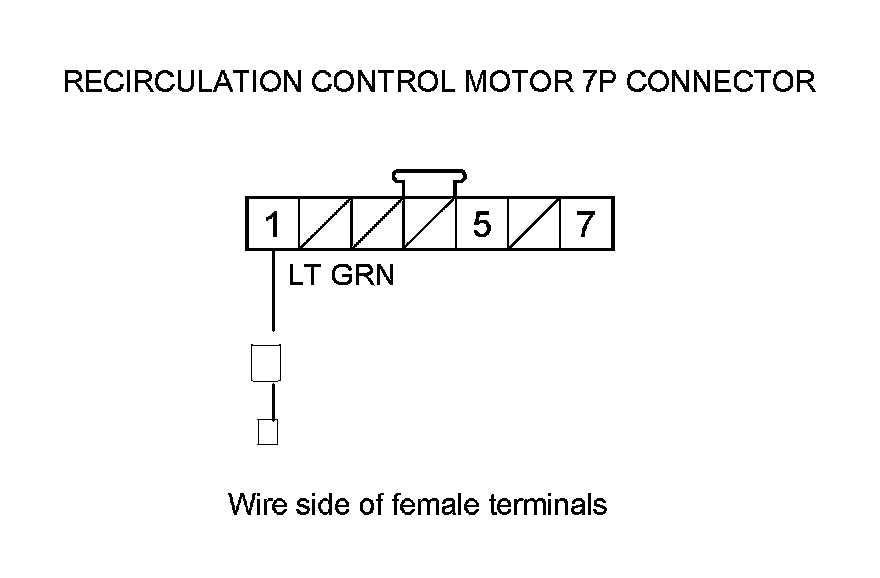 4. Measure the voltage between recirculation control motor 7P connector terminal No. 1 and body ground.