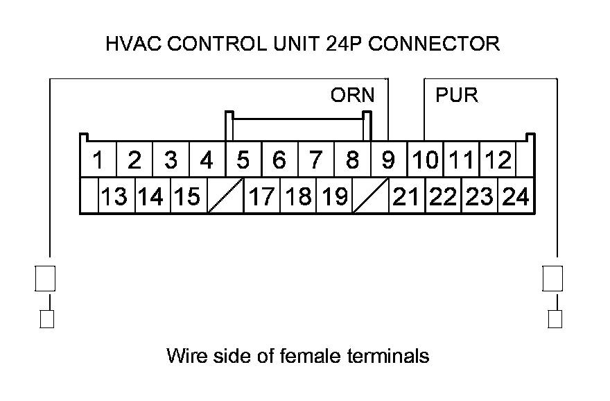 11. Check for continuity between the following terminals of the HVAC control unit 24P connector and the recirculation control motor 7P connector.