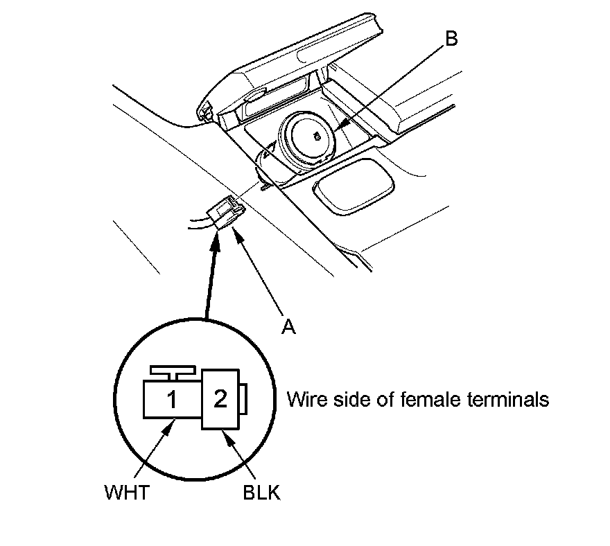 2. Disconnect the 2P connector (A) from the front accessory power socket (B).