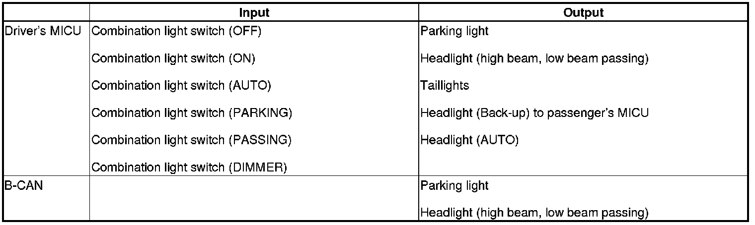 The passenger's MICU control of the front passenger's side headlight, and parking lights is based on inputs from the driver's MICU.