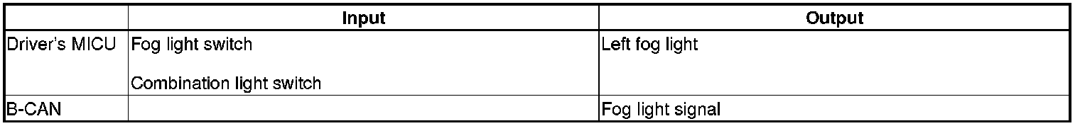 The driver's MICU control of fog light is based on inputs from the fog light switch.