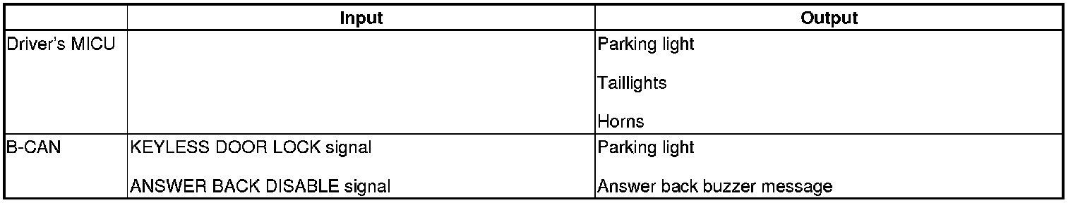 The driver's MICU control of the door lock actuators LOCK, UNLOCK, DRIVER'S UNLOCK, TRUNK UNLOCK is based on B-CAN door lock switch signals.