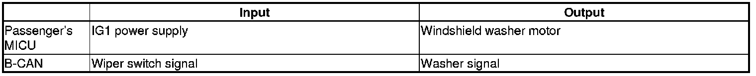 The passenger's MICU control of the washer motor is based on inputs from the wiper switch.