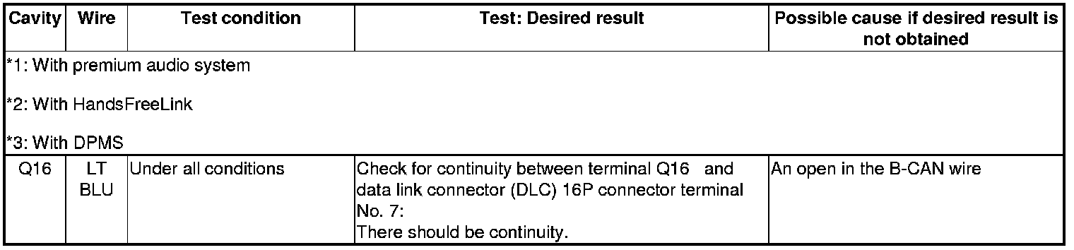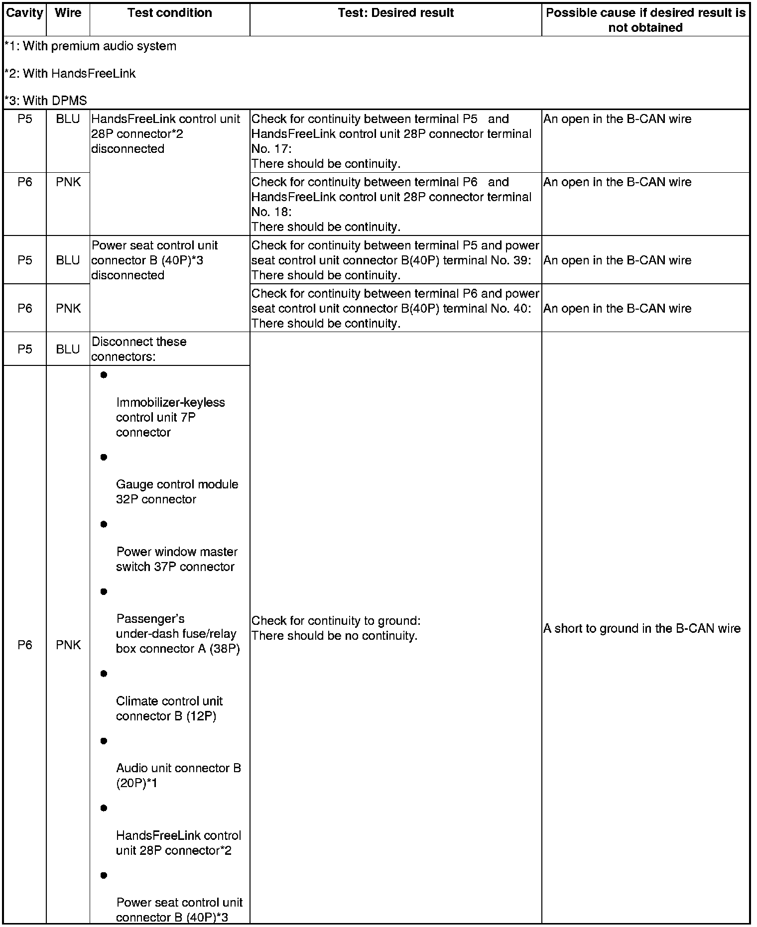 NOTE: Before testing, troubleshoot the multiplex integrated control unit first, using B-CAN System Diagnosis Test Mode A Troubleshooting - B-CAN System Diagnosis Test Mode A.
