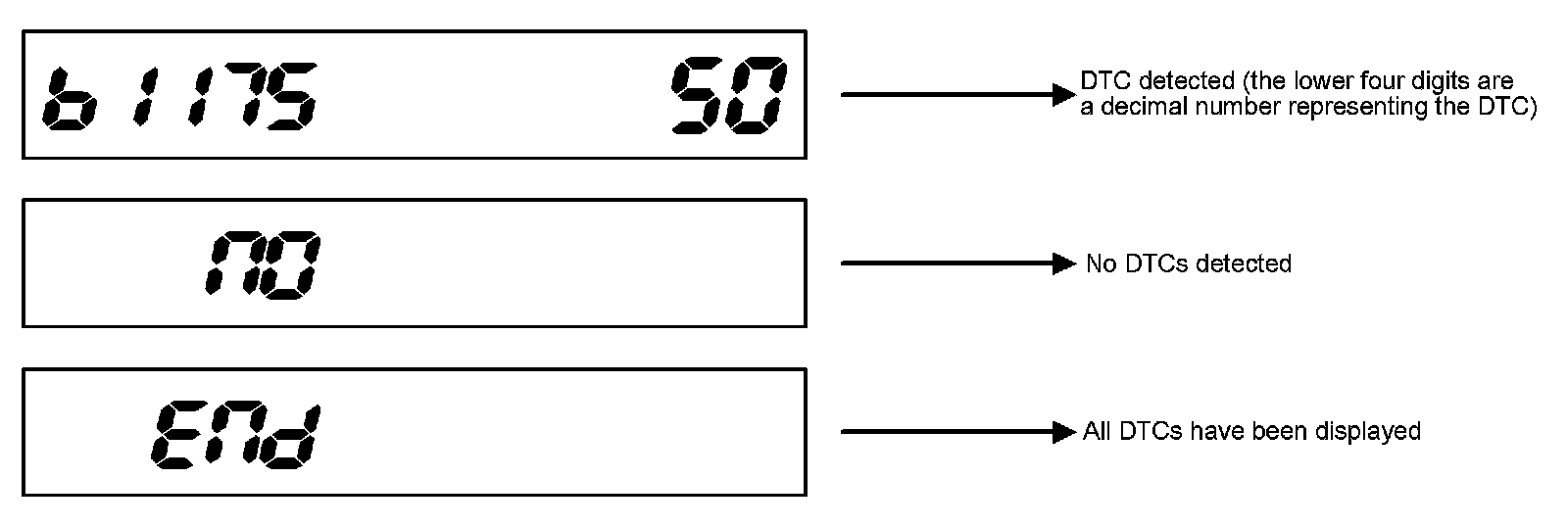 Enter B-CAN System Diagnosis Test Mode 1 Troubleshooting - B-CAN System Diagnosis Test Mode 1 And Test Mode 2 (Without The HDS). While in Test Mode 1, when communication between the MICU and gauge control module is normal, the DTCs which have been detected and stored individually by various B-CAN (Body-controller Area Network) units will be shown one by one on the LCD display. To scroll through the DTCs, press the SEL/RESET button.