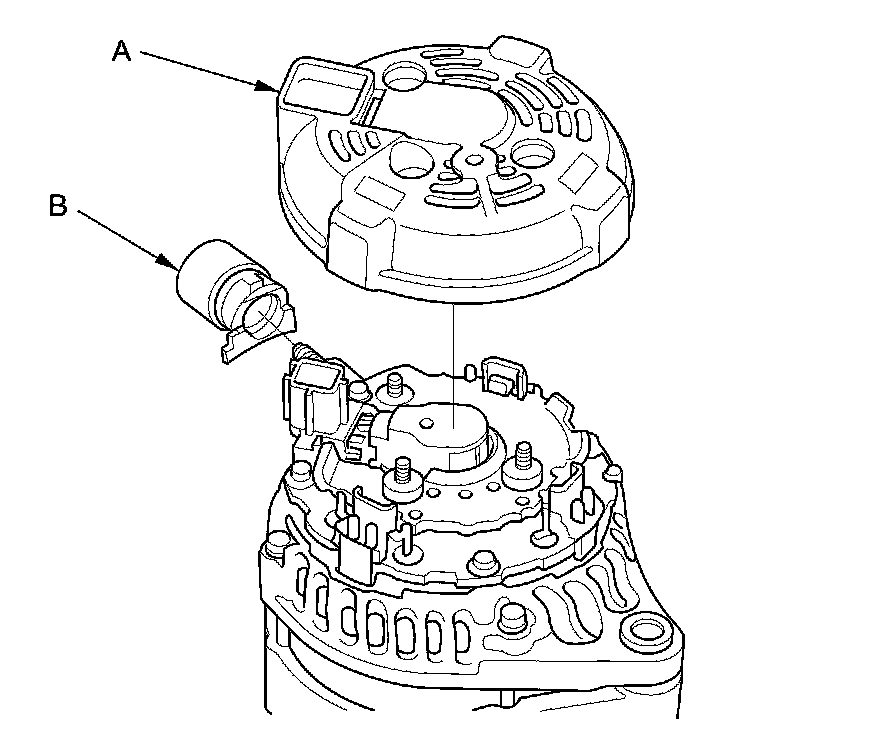 7. Remove the brush holder assembly (A).