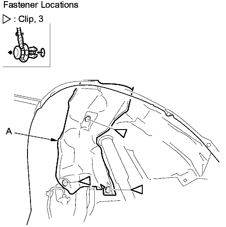 2. Detach the clips, then remove the fuel pipe protector (A).