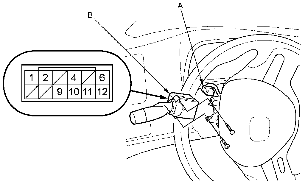3. Disconnect the 12P connector (A) from the combination light switch (B).