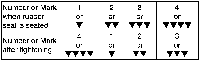 7. If four numbers or marks (1 to 4 or V to VVVV) are printed around the outside of the filter, you can use the following procedure to tighten the filter.