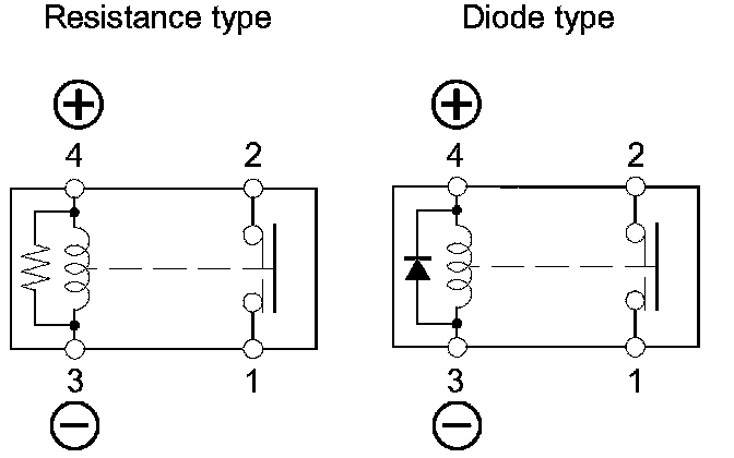 - There should be continuity between terminals No. 1 and No. 2 when the battery power is connected to terminal No. 4, and body ground is connected to terminal No. 3.