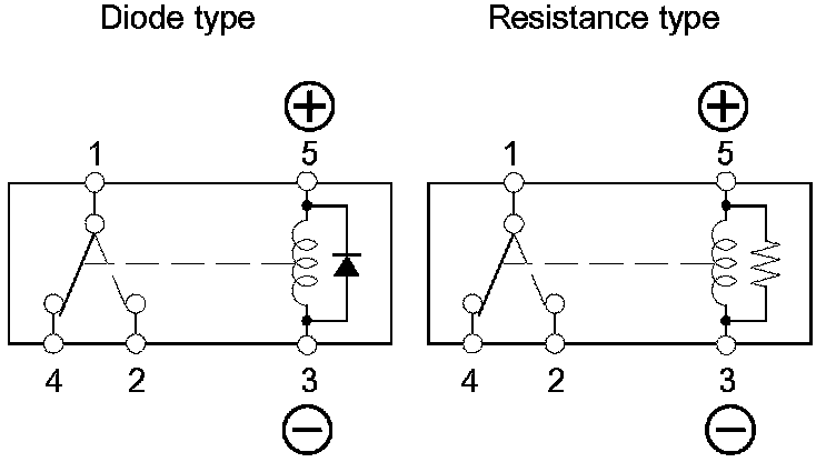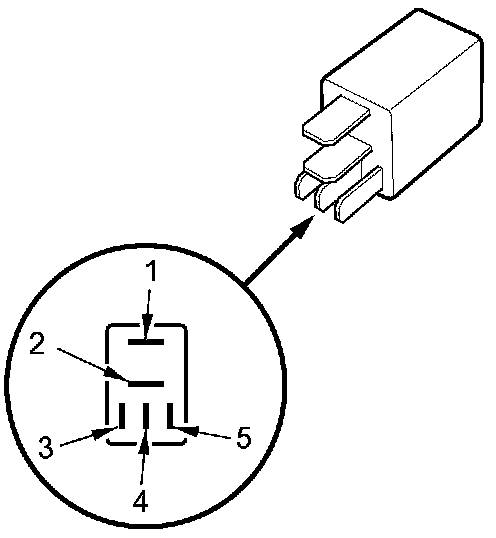 - There should be continuity between terminals No. 1 and No. 2 when the battery power is connected to terminal No. 5, and body ground is connected to terminal No. 3.