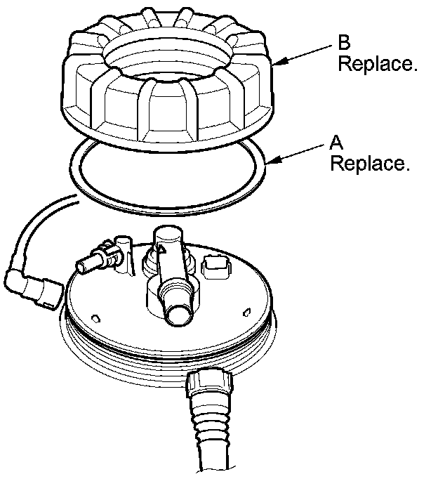 NOTE: To prevent a fuel leak, check the base gasket, visually or by hand, to make sure it is not pinched.