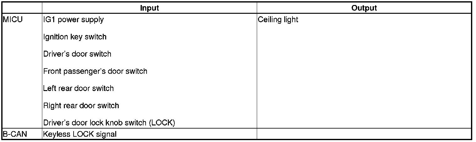 The MICU control of the ceiling light ON/OFF and dimming is based on inputs from each switch and B-CAN data.