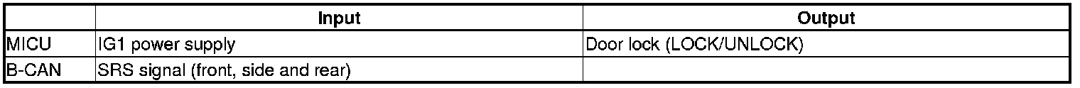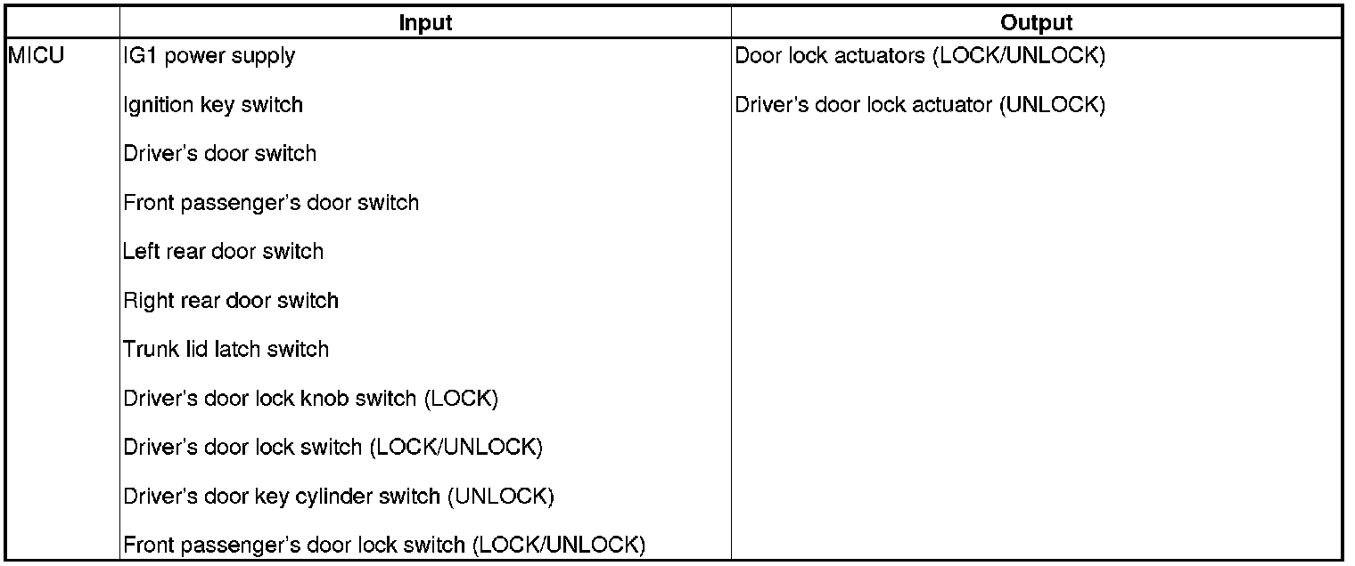 The MICU control of the door lock actuators is based on inputs from each switch and B-CAN data.
