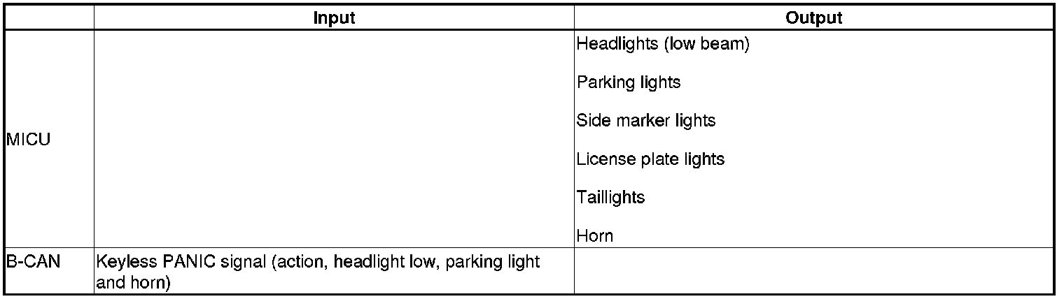 The MICU control of the keyless PANIC function is based on PANIC signals sent by B-CAN data.