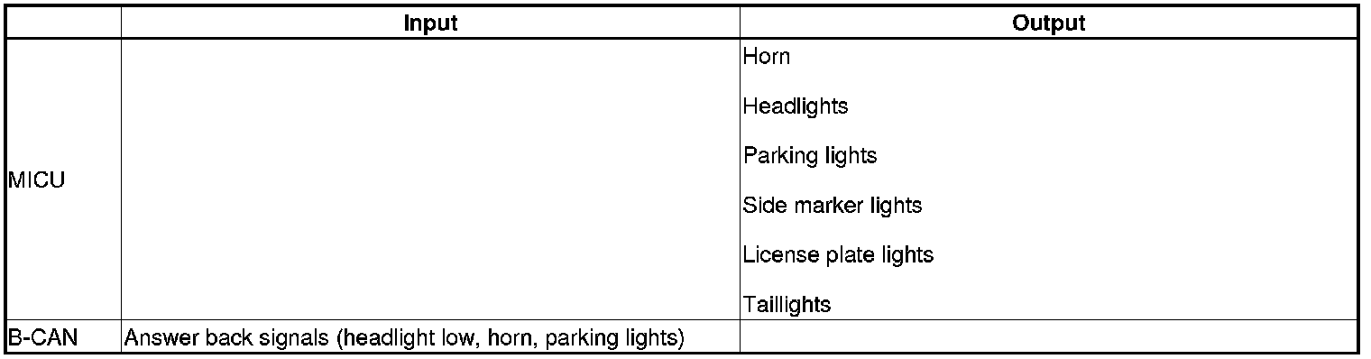 The MICU control of the lighting system and horn is based on inputs from each switch and B-CAN data.