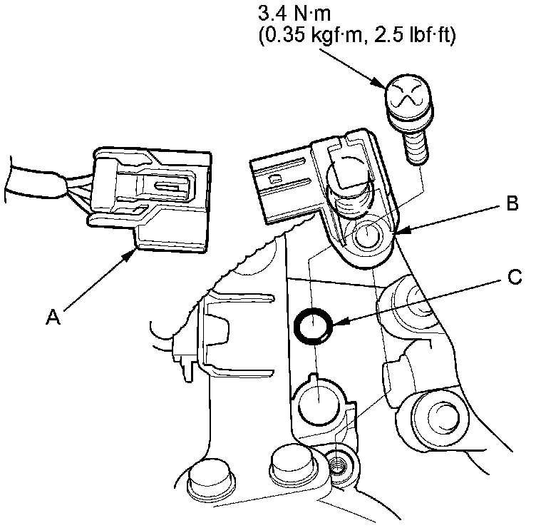 Install the parts in the reverse order of removal with a new O-ring (C).