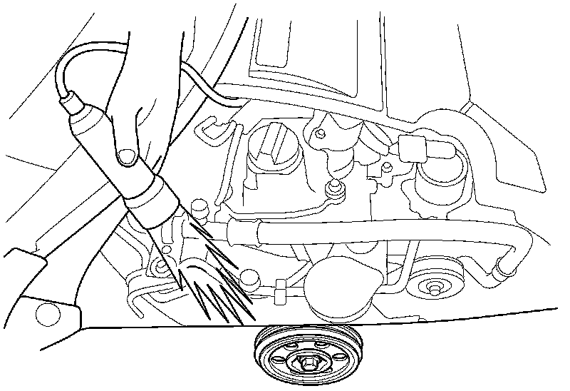 5. Start the engine. Hold the engine speed at 3,000 rpm with no load (in P or N) until the radiator fan comes on, then let it idle.